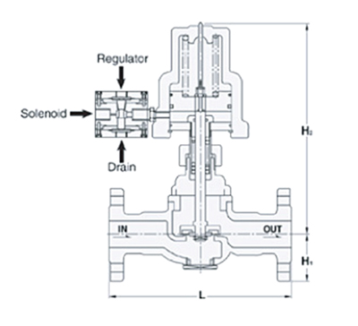 - 밸브 본체는 SYV-1F형과 동일하며 Actuator구동부에 보조변(Prssure Reducing Valve)를 부착하여 2차측 압력을 조절할 수 있도록 설계되었다.